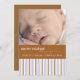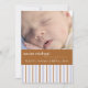 Introduce your new little one with this photo card of blue and brown stripes. On the front it's easily customised with your baby photo and birth info, and on the back update with your family names.