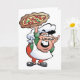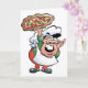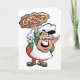 Pizza is everyones favorite and this design has fun with pizza. It is of a pizza chef holding a pizza up high as he makes it. Done in a cartoon style this pizza baker has a big grin on his face. This pizza baker design looks great on these greeting cards