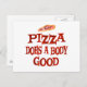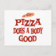 A pizza lover will enjoy this fun design with a piece of pizza and the words Pizza Does a Body Good. Makes a great gift.