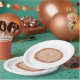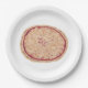 These paper plates feature a painting of a whole pizza with red sauce and cheese.
