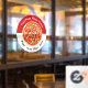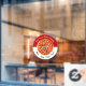 Promote your pizza parlour or Italian restaurant with these cool pizza promotional window cling decal sign templates with image of a pizza pie and loads of toppings along with text you can customise that follows the curved shape in this geometric emblem you can use to advertise your Italian restaurant and pizza place. Display one on all your store windows or small business doorway.