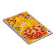 Pizza Notebook features a delightful mix of cartoon pizza slices, gooey cheese, and realistic pepperoni—set against a bold yellow background. Designed by a 7-year-old, this playful notebook is perfect for anyone who loves pizza and creativity.