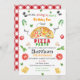 Our “Pizza Party Birthday Invitation” features watercolor images of delicious pizza slices arranged in a semi-circle, surrounded by tomatoes, olives and sprigs of rosemary. The background is white, the design is simple and elegant.