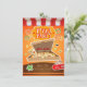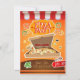 A lively pizza party invitation unfolds with a vibrant orange backdrop, featuring a playful pizza box overflowing with cheesy slices. The camera performs a dynamic zoom in, highlighting the delicious toppings and the inviting text that reads 'Pizza Party.' As the zoom continues, the scene transitions to a festive atmosphere filled with cheerful graphics of pizza slices and party elements. The lighting is warm and inviting, enhancing the fun mood, while the overall style is colorful and cartoonish.