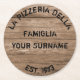 A wooden effect customisable coaster, with a pizza theme. Written in Italian it says "La Pizzeria Della Famiglia" then you can put your family name. This translates as "The (your surname) family's pizzeria". Printed with a wood effect background and using an aged stencil style font, these coasters look great. You can also change the date on them to one of your choosing. Perfect as a gift for someone with a pizza oven, or a perfect present for the pizza chef that likes cooking pizza at home. Also ideal for pizza themed parties.