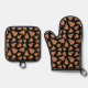Pizza Party Pattern Black Oven Mitt & Pot Holder Set