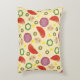 The cushion is small to medium sized. It can be washed. It is well constructed. The material used is pleasant and feels decent quality. It has a very slight plush feel which is good. It is well labelled and its care clearly stated. Theres nothing not to like about it. All in all a good item. The deduction of one star overall is due to long delays in delivery to the UK. It's not clear if this was due to Zazzle or somewhere else in the chain as I did not receive status updates of dispatch or progress. I cannot comment anymore on that other than to say that was our experience but it may not be the same for you. The printing was surprisingly close to what we were expecting. Its an art piece and on material so its hard to assess the precision of printing but it seems close to the original. The soft lines are reproductions of the original. The colour is a fair reflection of the painting. This was printed in the US and it looks like US quality. No issues.