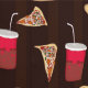 Pizza with sausage and pepperoni and soda with straw in a repeating pattern.