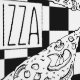 Food themed wallpaper with a hand drawn pizza slices and herbs pattern on a black and white chequerboard background. It's perfect to create a feature wall in your kitchen or a restaurant!