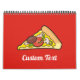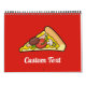 Pizza slice cartoon illustration. Custom background colour. Custom text.