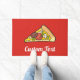 Pizza slice cartoon illustration. Custom background colour. Custom text.