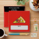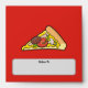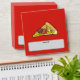 Pizza slice cartoon illustration. Custom background colour. Custom text.