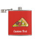 Pizza slice cartoon illustration. Custom background colour. Custom text.