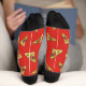 Pizza slice icon. Seamless pattern. Custom background colour. Custom top stripe colour. Custom text on each sock.