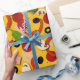 Awesome pizza topping cartoon wrapping paper. Pepperoni, peppers, mushrooms, ham, olives and salad leaves all patterned over this crazy gift wrap. Perfect for pizza lovers and chefs.