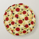 If you love pizza then you'll enjoy this yummy, pepperoni pizza with peppers, mushrooms, black olives and lots of cheese! These toppings make a cute pattern for this round accent pillow. You can customise this design by changing the pattern size or adding your own text. This pizza pillow is sure to add a fun accent to any pizza lovers home!