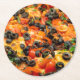 Pizza with black olives round paper coaster