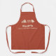 This apron in red brown tones and illustrated with a slice of pizza, a chef's hat, and a building will be perfect as a gift to a cooking chef or someone who love pizza!