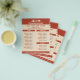 A flyer in beige and red brown tones with menu & price list for pizzeria, restaurant, food truck, home delivery food or cooking chef, illustrated with a slice of pizza, a chef's hat, and a building. You can distribute them to your customers or in mailboxes. Texts are fully customisable!