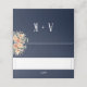 Dark blue wedding place card, with watercolor apricot flowers and garden foliage. Space on the front for writing the guest's name, and an editable section inside for your customised message. A simple yet elegant contemporary botanical design inspired by boho vintage style.