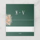 Dark green wedding place card, with watercolor apricot flowers and garden foliage. Space inside for a special message from the bride and groom to their guests. A simple yet elegant contemporary botanical design inspired by boho vintage style.