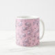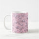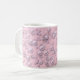 Placers of white-pink pearls on pink velvet coffee mug
