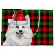 Dog lovers will adore receiving or giving this cute holiday season gift bag, with a cute American Eskimo dog on a festive red and green plaid patterned background.