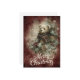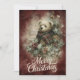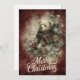 Celebrate the season with this cheerful card featuring a plush teddy bear in a red-and-green plaid scarf, nestled within a wreath of holly, berries, and poinsettias. The textured red background and faint cursive script add vintage charm, while the white “Merry Christmas” lettering brings festive elegance.