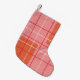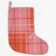 Plaid Checkered Fabric Pattern in pink, pale oran Small Christmas Stocking