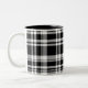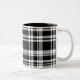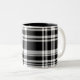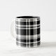 This ceramic coffee mug is shown in a black and white plaid print.