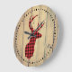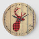 Plaid Deer Head with Antlers on Faux Wood Large Clock