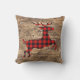 Plaid Deer On Faux Brown Tree Bark Texture Pattern Cushion