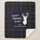 Cute home sweet home Christmas blanket you can easily customise by clicking the "Personalise" button, Featuring deer silhouette and clan Malcolm tartan in lime green and purple chequered design. Perfect for your cosy nights in during the holidays. Makes a great housewarming gift