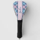Pretty pastel pink and blue plaid pattern golf club cover personalised with your name. Change the name yourself when you order.