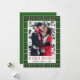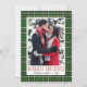 The classic look of this card will be an elegant way to send holiday wishes to friends and family. A green plaid pattern surrounds a white frame, suitable for your favourite vertical photograph. Space for two lines of text lets you personalise the card with your own greeting and family information using the easy provided templates. The reverse side is printed in a matching green.