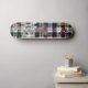 Plaid Grunge - Black and White Plaid background is distressed and worn. Featuring various symbols such as an anarchy symbol, skull and crossbones, SK8, and a "Hell on Wheels" patch.