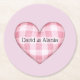 Plaid Heart 3D with Couple Names Round Paper Coaster