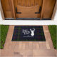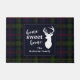 Cute home sweet home Christmas doormat you can easily customise by clicking the "Personalise" button, Featuring deer silhouette and clan Malcolm tartan in lime green and purple chequered design.