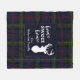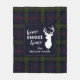 Cute home sweet home Christmas blanket you can easily customise by clicking the "Personalise" button, Featuring deer silhouette and clan Malcolm tartan in lime green and purple chequered design.