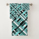 Plaid in Aqua, Teal, Black & White Diagonal Bath Towel Set