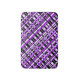 This bath mat features a modern twist on plaid in shades of purple, lavender, grey, black and white.