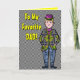 Fun retro-ish Father's Day card sure to give Dad a chuckle & warm the cockles of his heart (whatever the heck "cockles" are!). The comical man dressed in loud plaids & a homburg on the cover is our over-the-top version of the stereotypical salesman from the 1950's to early 1960's. The cover and inside text is fully customizable.