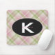 Pink and olive plaid mousepad with name and initial designed by HAMbyWhiteGlove aka HAMbWG