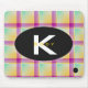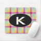 Pink, yellow and green plaid mousepad with name and initial designed by HAMbyWhiteGlove aka HAMbWG