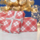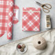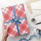 Classic gift wrap in red and white plaid. The timeless design evokes a sense of warmth and tradition, perfect for any occasion, from festive holidays to special birthday celebrations. The rich red, and crisp white lines intersect in a harmonious pattern, creating a visually appealing package that exudes both elegance and charm. Topped with a satin ribbon and a handwritten tag, this gift wrap transforms any present into a cherished memory, ready to be unwrapped with joy and anticipation.