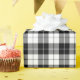 A wrapping paper designed with a black and white plaid pattern. Customise the white background among other options.