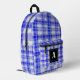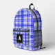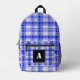 Plaid Pattern Gingham Check Dark Blue Monogram Printed Backpack