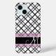 Plaid Pattern with Monogram - black white pink Case-Mate iPhone Case