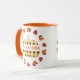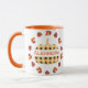 Fall mug with design featuring a plaid pumpkin surrounded by fall leaves with a name running through the pumpkin. This mug can be personalised with your own name.