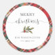Plaid Red Check Elegant Merry Christmas Farmhouse Classic Round Sticker